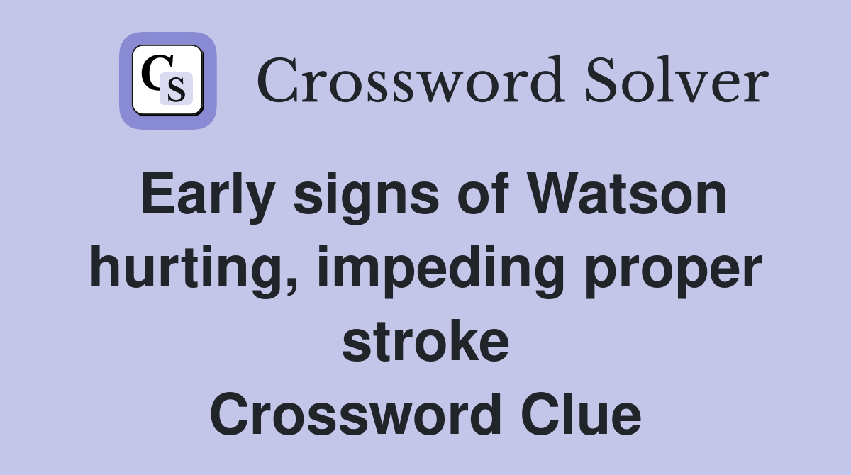 Early signs of Watson hurting, impeding proper stroke Crossword Clue